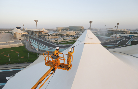 To achieve the final finish in line with the extremely high standards required, the contractors will use 4,500 litres of ‘Yas blue’ paint, 720 litres of ivory, 1,440 litres of red and 1,440 litres of white paint.